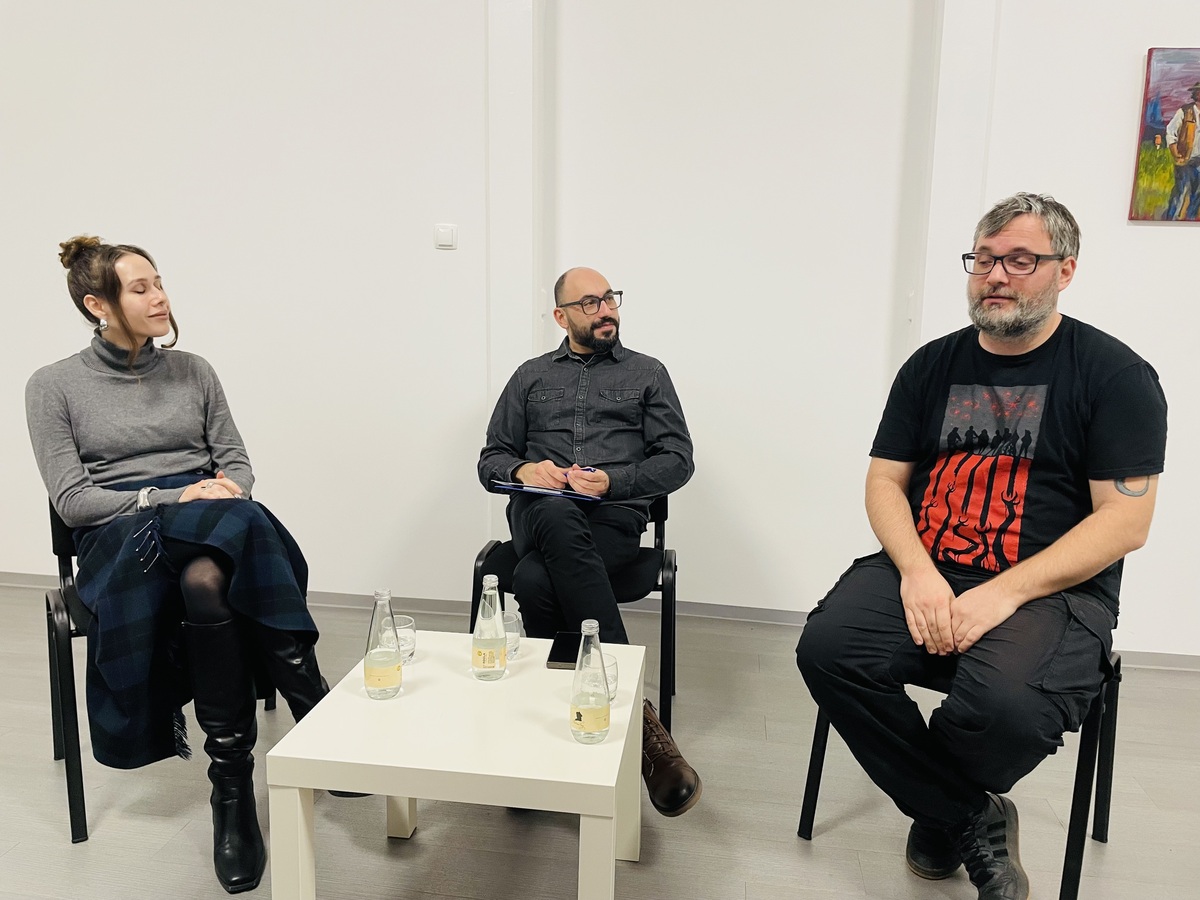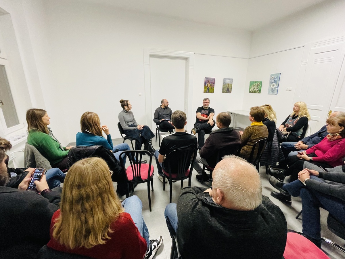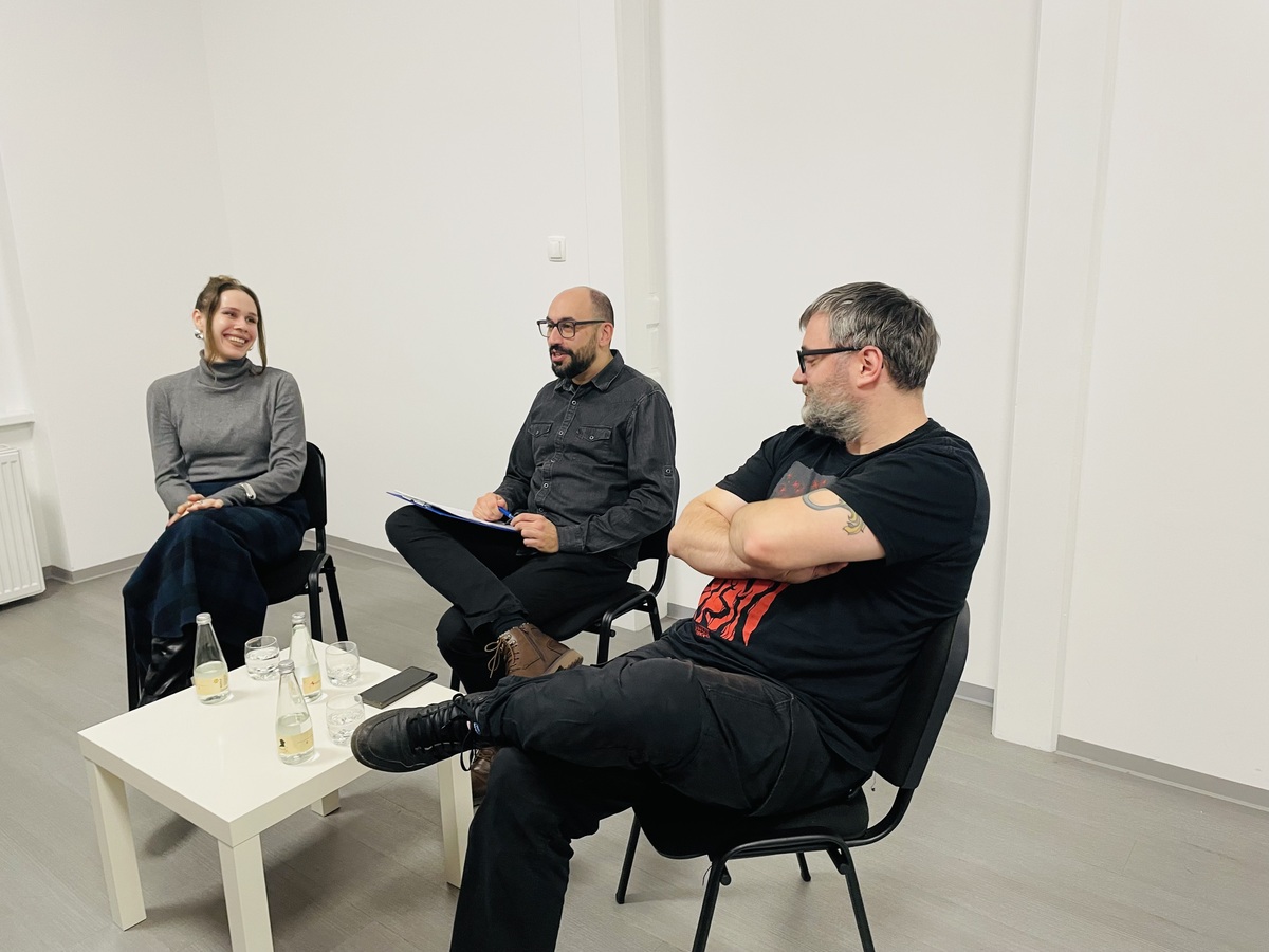 Gosta dogodka sta bila dr. Aljoša Harlamov (literarni urednik, kritik in pisatelj) ter Sara Nuša Golob Grabner (kuratorica, umetnostna zgodovinarka in fotografinja). Pogovor je sicer povezoval konjiški ustvarjalec, mag. Aleš Jelenko. Debata je potekala okoli promocije knjig, likovnih del, vloge založb, galerij in drugih ustanov ter (samo)iniciativnosti ustvarjalcev pri svojem delovanju.