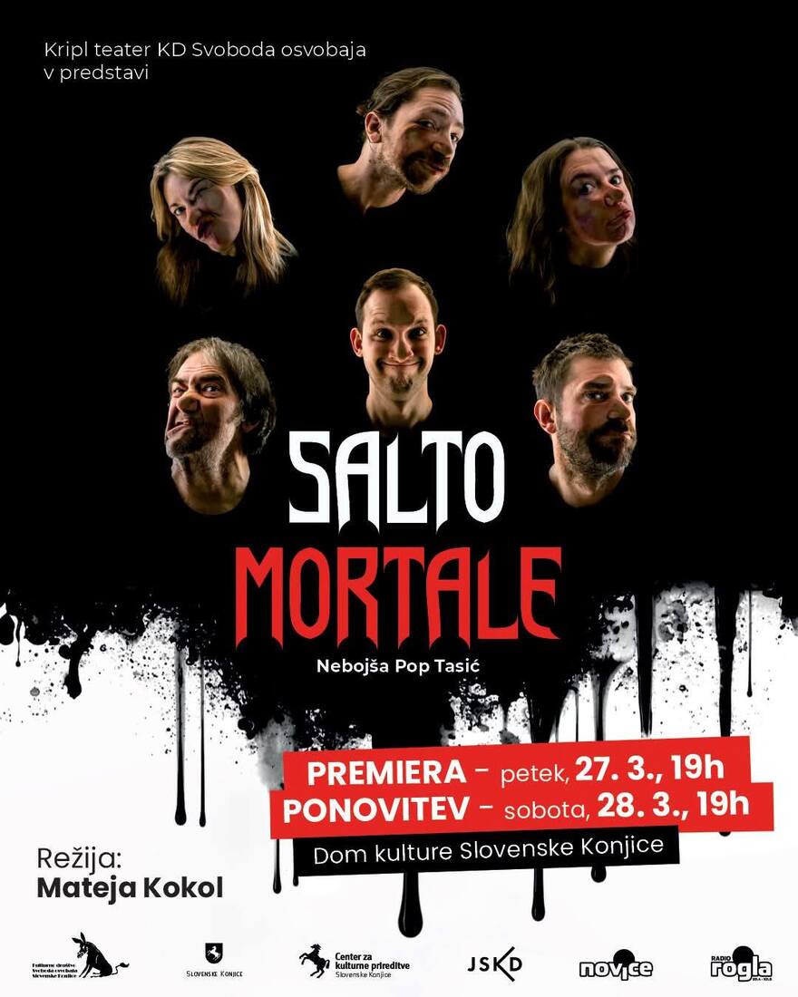 Pretekli vikend je Kripl teater KD Svoboda osvobaja Slovenske Konjice uspešno izvedel premiero in prvo ponovitev nove gledališke predstave Salto mortale. Avtor besedila je srbski dramatik, dramaturg, scenarist, pesnik, glasbenik in vsestranski umetnik Nebojša Pop Tasić. Režijo so tokrat zaupali Mateji Kokol, ki je diplomirala iz gledališke režije na AGRFT. S Kripl teatrom je sodelovala prvič in o predstavi zapisala: »Predstavo doživljam kot ples čustev, ki jih trenutno čutim v sebi kot posledico lastnega doživljanja sveta in ujetega posameznika oziroma posameznice v njem.«
