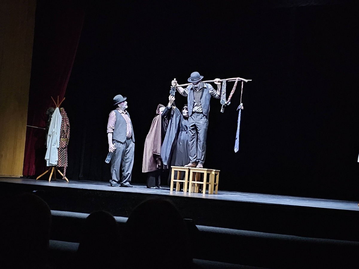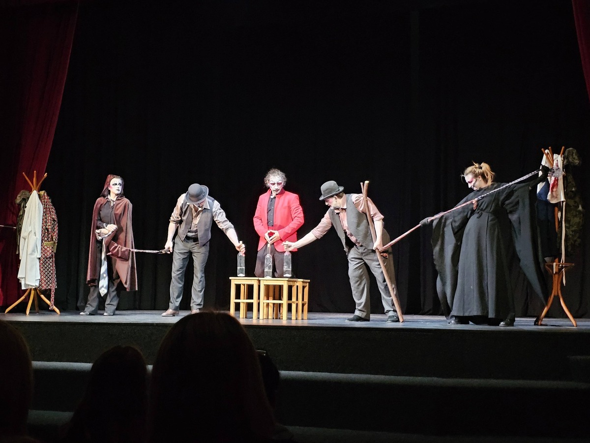 Kripl teater je skupaj z njo ustvaril scensko minimalistično in kostumsko nadrealistično črno komedijo, ki skozi prizore vpleta različno simboliko. Za igralski ansambel, ki ga sestavljajo Franjo Funkelj, Karmen Kukovič, Lorena Marčič, Uroš Kropf, Tine Lamovec in Andraž Laubič, je bila predstava izziv, ker je besedilo v verzih in ker naslavlja tematiko različnih oblik nasilja. Producentka predstave, Karmen Kukovič je zapisala: »Živeti v času, ko v zraku dnevno visi neka nova grožnja in posledica te, je izredno zahtevno. Ne razumem, zakaj se človek tako oklepa različnih oblik nasilja. Obrnimo ploščo in čas, ki ga namenimo izvajanju nasilnih dejanj, preusmerimo v dobra dejanja.«